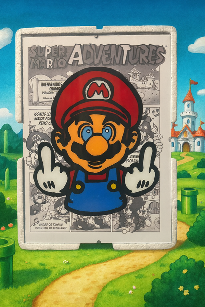 Atrévete con esta versión irreverente del clásico personaje que marcó generaciones. Inspirado en el estilo comic retro, este diseño único fusiona nostalgia gamer con actitud desafiante. Ideal para fans de lo alternativo, el arte pop y la cultura geek con personalidad.